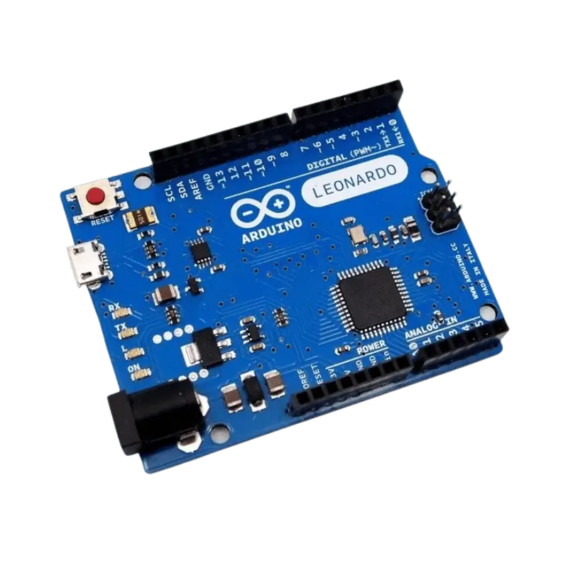 Because the main chip handles the USB connection directly, the Leonardo can appear to a connected computer as a standard Human Interface Device (HID), such as a keyboard or mouse. This allows you to create custom hardware that types commands or moves the cursor automatically. Additionally, the Leonardo offers 12 analog inputs and 7 PWM channels, giving you more flexibility for complex sensor-driven projects than a standard Uno.