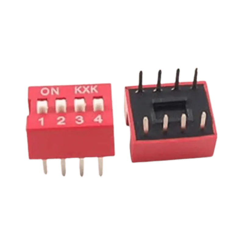 A high-quality 4-position DIP switch featuring four independent SPST slide switches in a single compact unit. Perfect for binary addressing, hardware mode selection, and digital configuration in your electronic circuits. Quality assured by Pro Tronix.