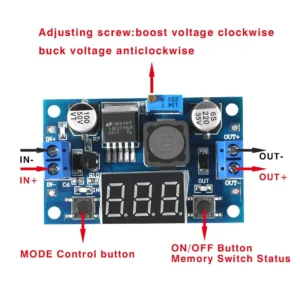 A high-efficiency step-down voltage regulator featuring an integrated LED voltmeter. Easily lower input voltages up to 40V to a stable output, with real-time voltage monitoring on the built-in digital display. No multimeter required for calibration!