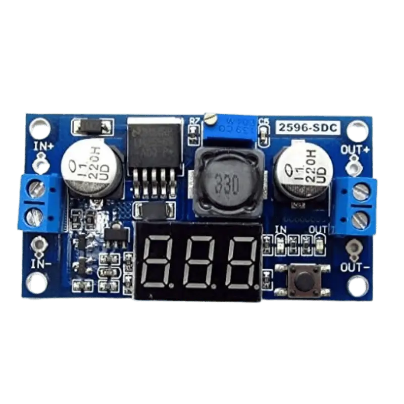 This upgraded version of the standard LM2596 module includes a 3-digit LED display that shows either the input or output voltage. It is the perfect power solution for hobbyists who want to monitor their battery levels or output stability at a glance. The module also features a button to toggle the display on/off or switch between reading the input and output voltage.