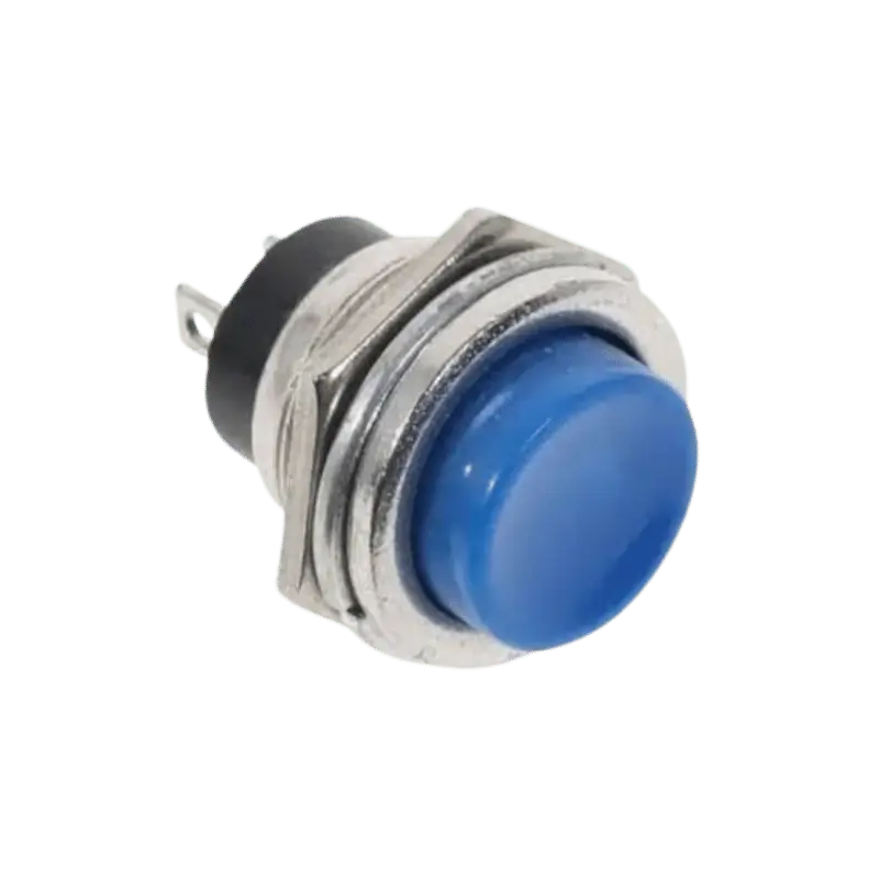 A premium, heavy-duty metal push button featuring a vibrant blue actuator and a robust stainless-steel body. Rated for durability and high-performance, this 2-pin momentary switch is the perfect blend of industrial strength and modern aesthetics. Quality assured by Pro Tronix.