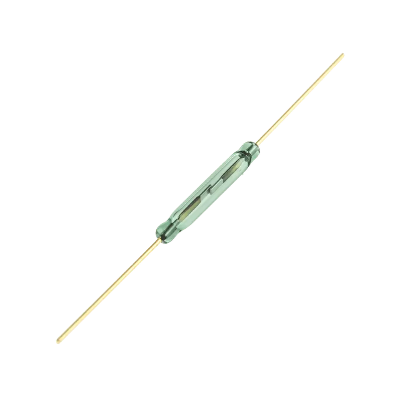 When the device is exposed to a magnetic field, the two ferrous pins inside the switch pull together and the switch closes. When the magnetic field is removed, The Reed Switch separates and the switch opens. This makes for a great non-contact switch. This switch can carry up to 1.2A.
